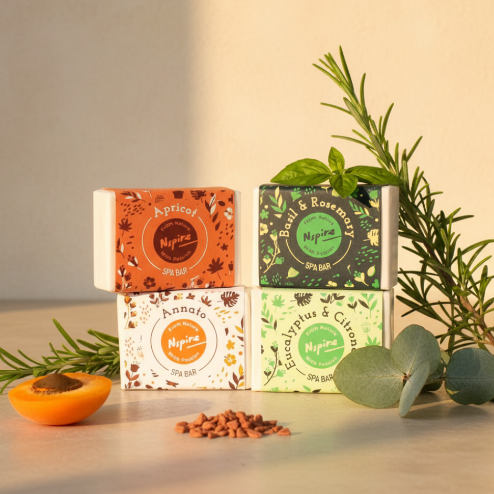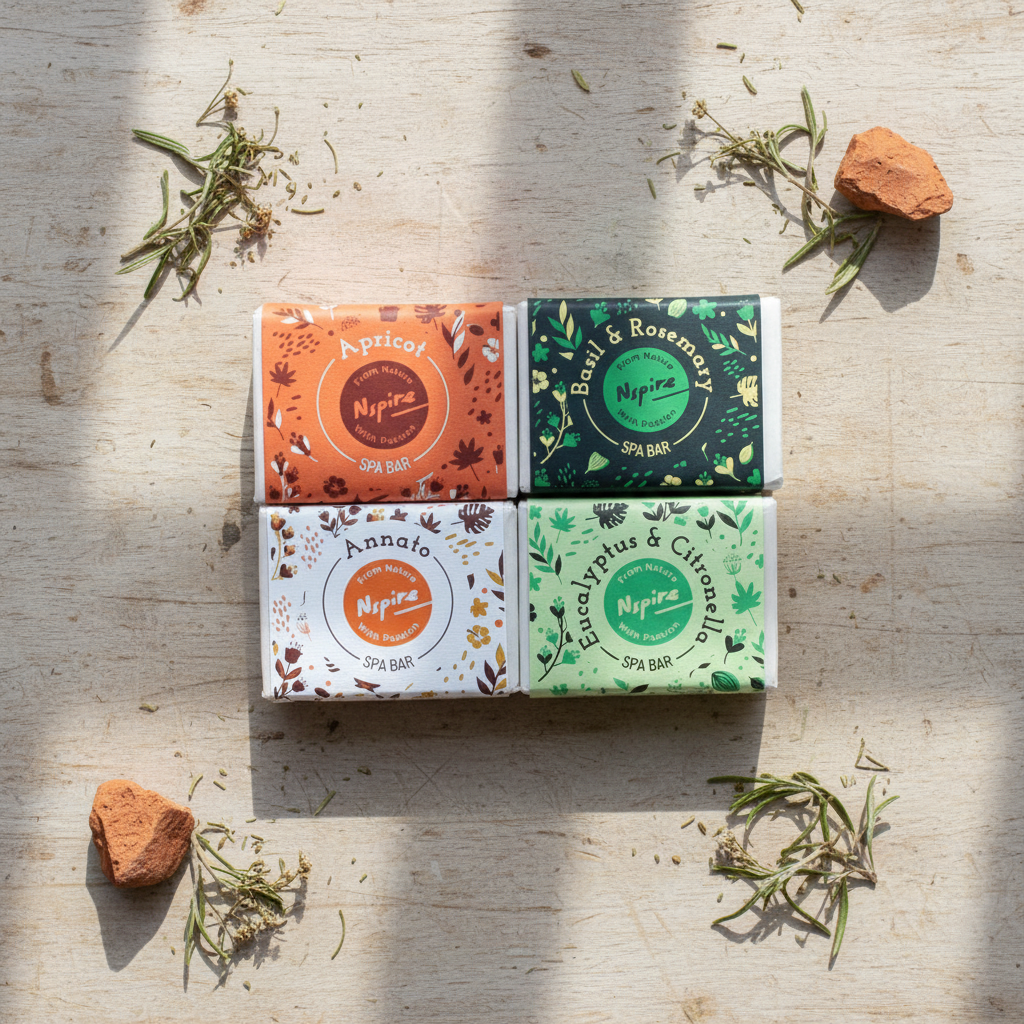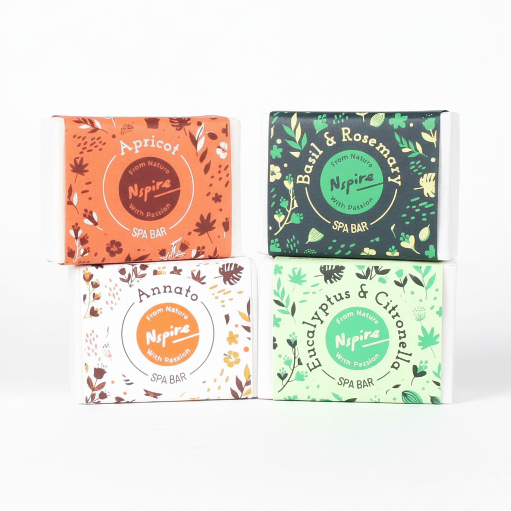 Nspire Spa Bar-Pack of 4(Basil & Rosemary, Annato, Apricot, Eucalyptus & Citronella)